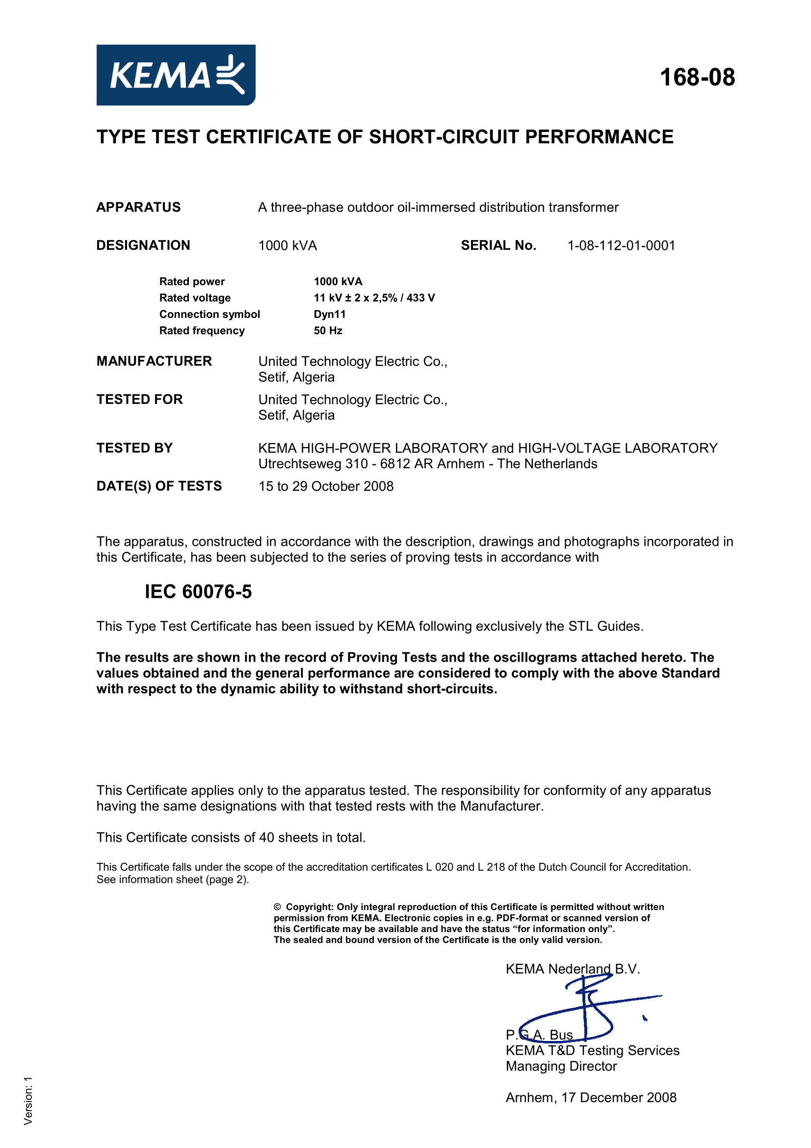 Download the technical sheet of Transformer 1000KVA/30KV for detailed product specifications and performance data.