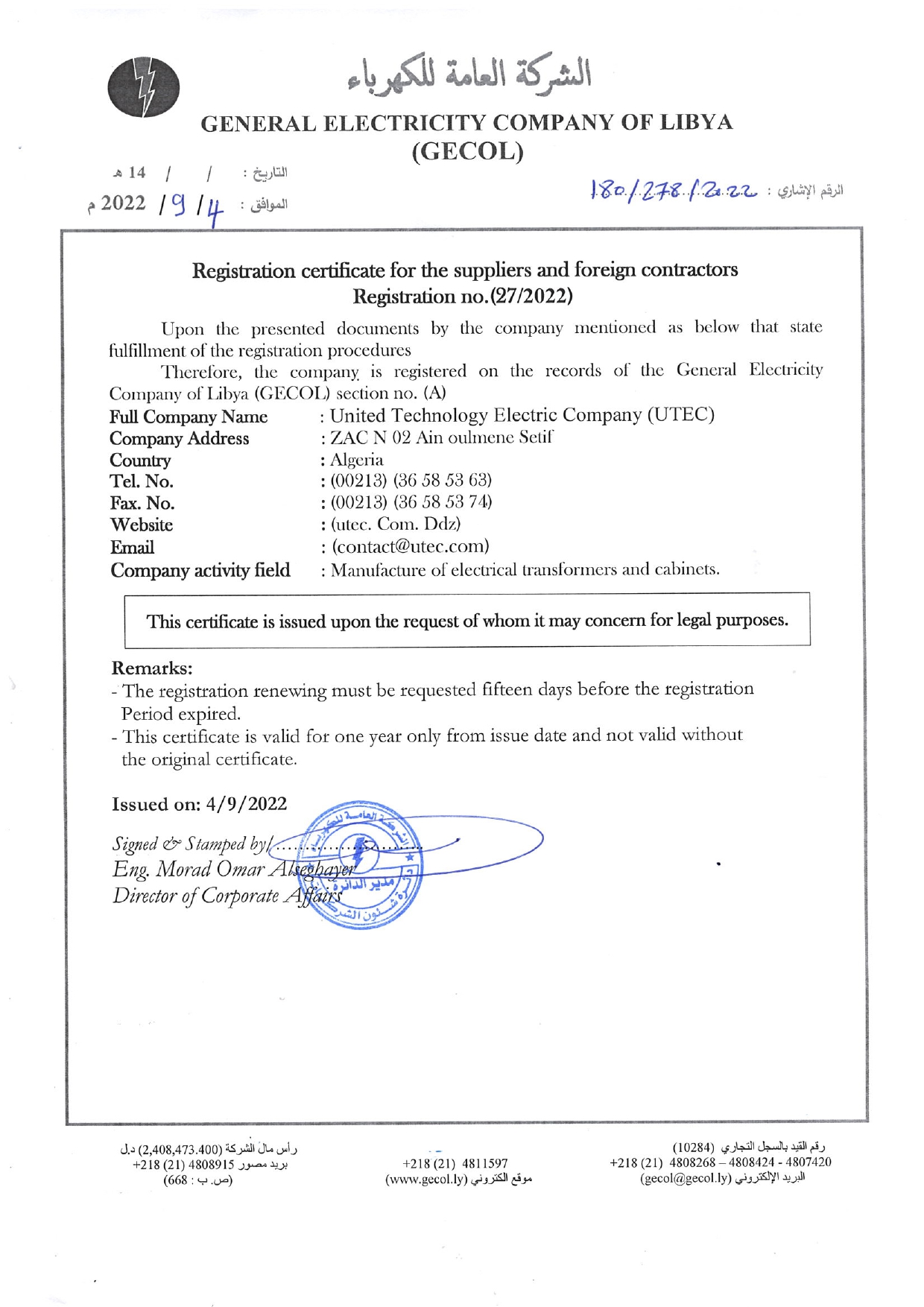 United Technology Electric Company's participation in the third edition of the Made in Algeria Fair, held last week in Tripoli, the capital of Libya, ...